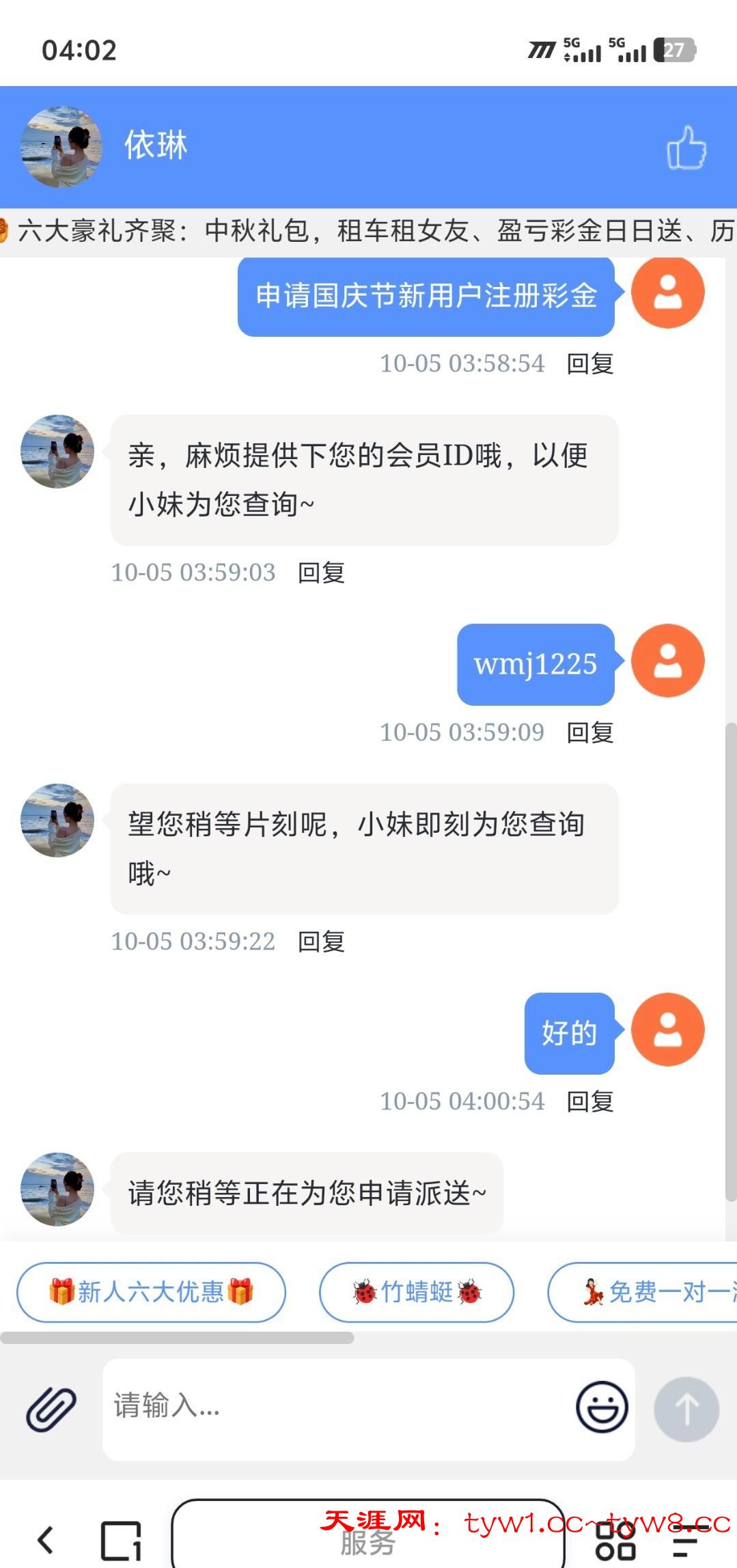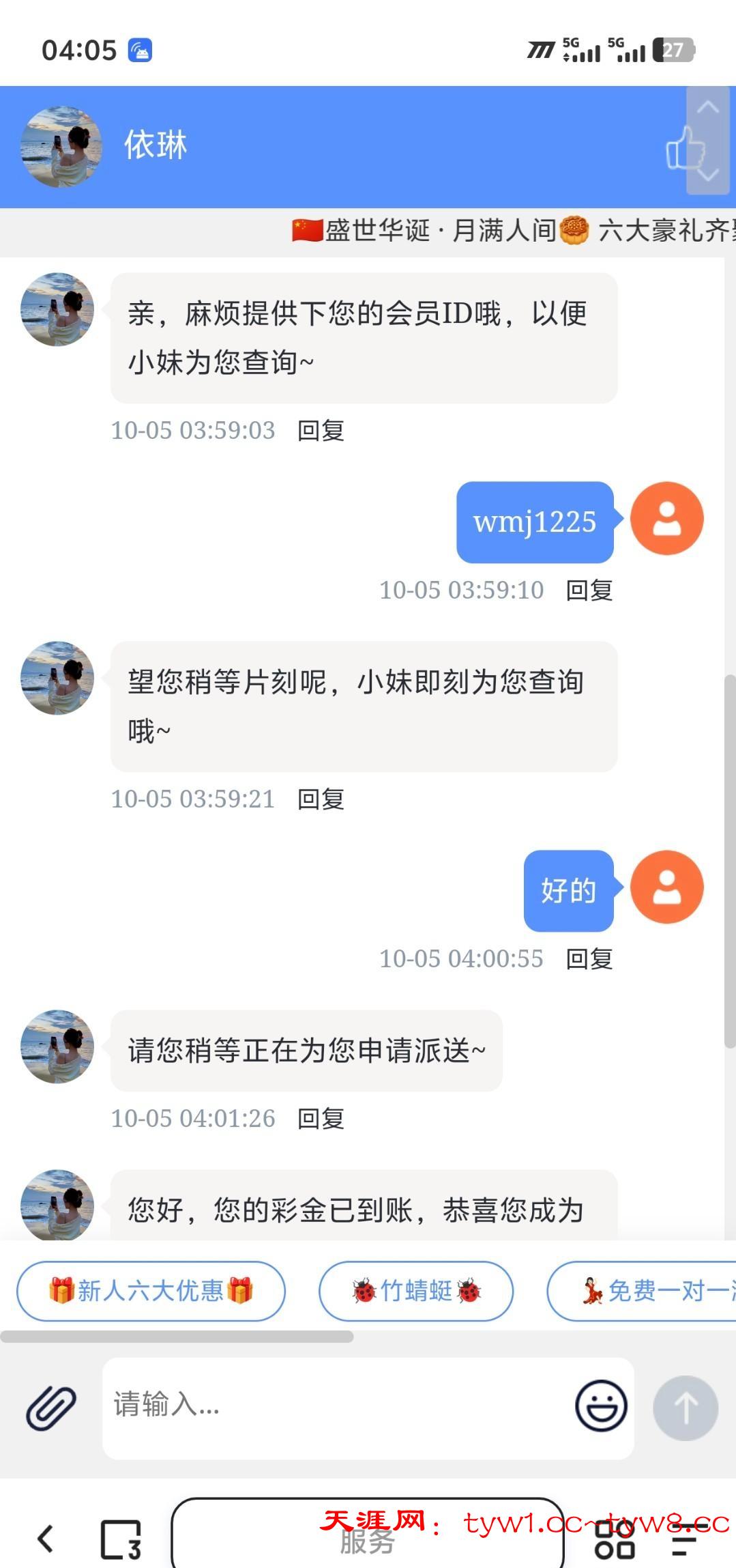 链接i71i.com/wgjj注册送18彩金,绑卡,绑手号,然后直接找在线客户说申请国庆节注册彩金,发账号就行,目前没有查手机号,限制电子棋牌捕鱼,100出款,我没打出来,挂壁,出款自测