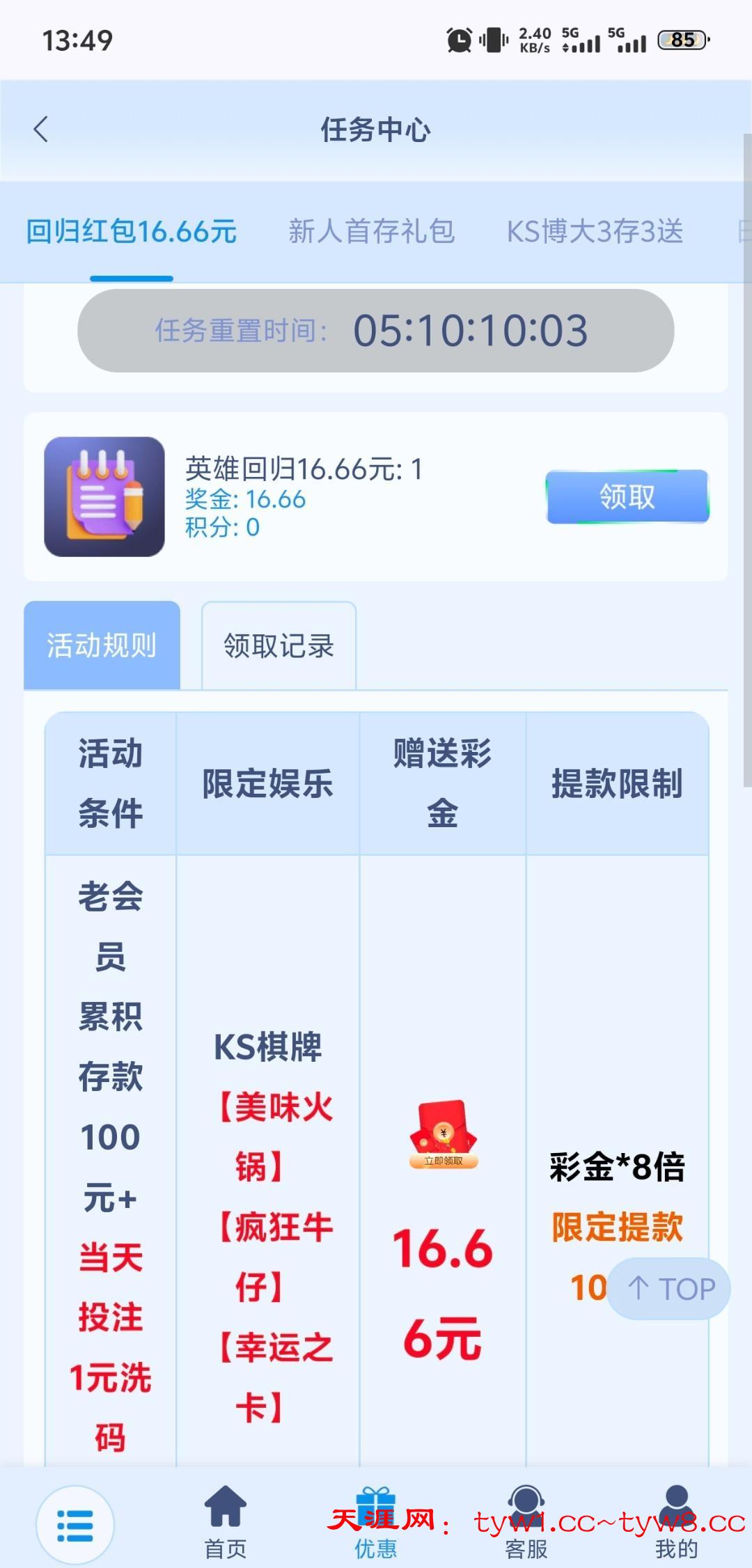 英雄回归彩金刷新了,可以