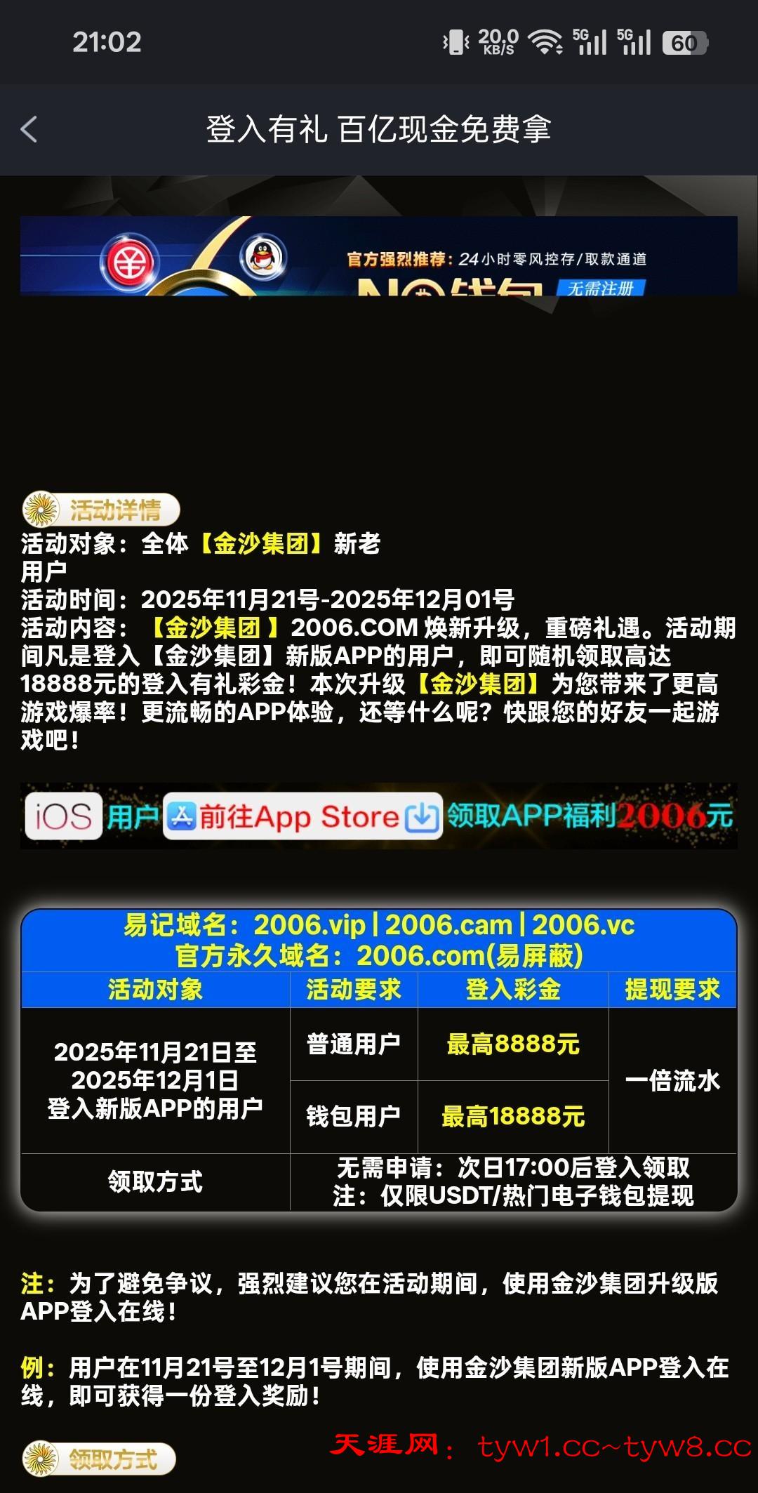 明天登录也还有2个活动,一个是保存网址送彩金一个登录app彩金